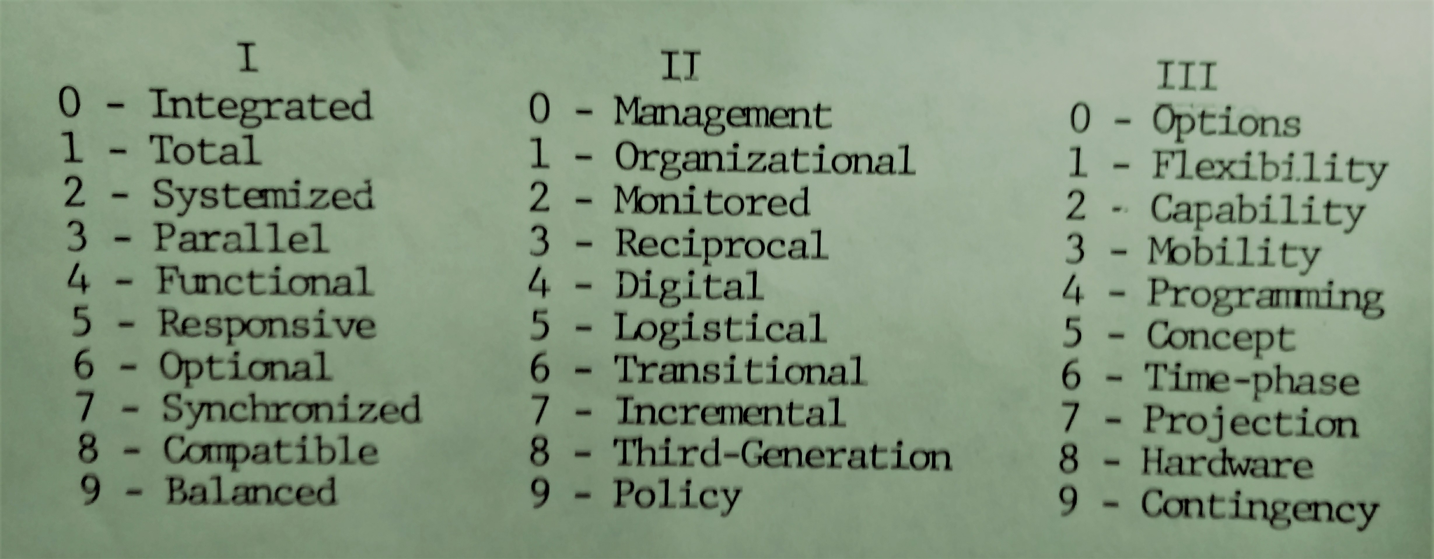 Name the program by selecting one term from each of the following three columns. If it was a “Personnel” program you could use 5-1-6. Responsive Organizational Time-Phase or “ROT” for short.