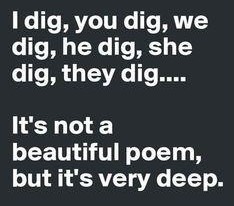 As my contribution to the current culture, I feel a real responsibility to donate something to the cause. Since I’m not a poet, I have the right to have some fun with poetry in general. I’ve never really had an appreciation of poetry and all of the flowery and descriptive emotions that are thrown around so freely. Since I’ve never heard most of those pretty phrases used in normal conversation, they don’t feel real and meaningful to me. I like my poetry to be more down to earth without all the BS. Here’s another beauty for you . . .