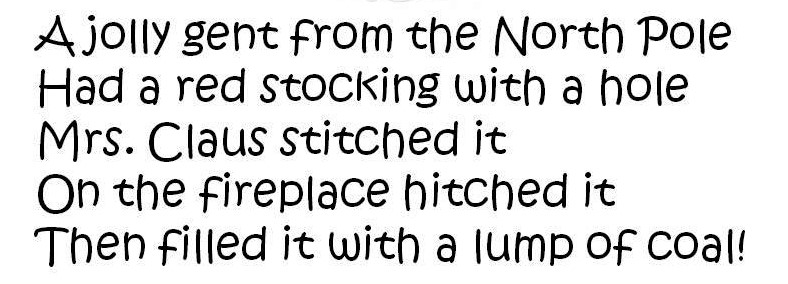 Continuing the Christmas theme for this week, here are a group of Christmas limericks collected from far and wide places. I hope they put a holiday grin on your face.