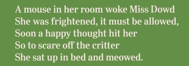 I tend to look for publications containing limericks and I like them funny, silly, bawdy, and outright outrageous. Many of my readers constantly complain that my selections are too tame. They want lots of sexual content and even go so far as to complain about my selections of children’s limericks. I enjoy posting the more innocent lyrics from kids with the hope they will someday grow up and write some truly memorable and bawdy poetry. Someone has to assist the next generation in their endeavors, and I have gladly volunteered. Here are a few you can sample . . .