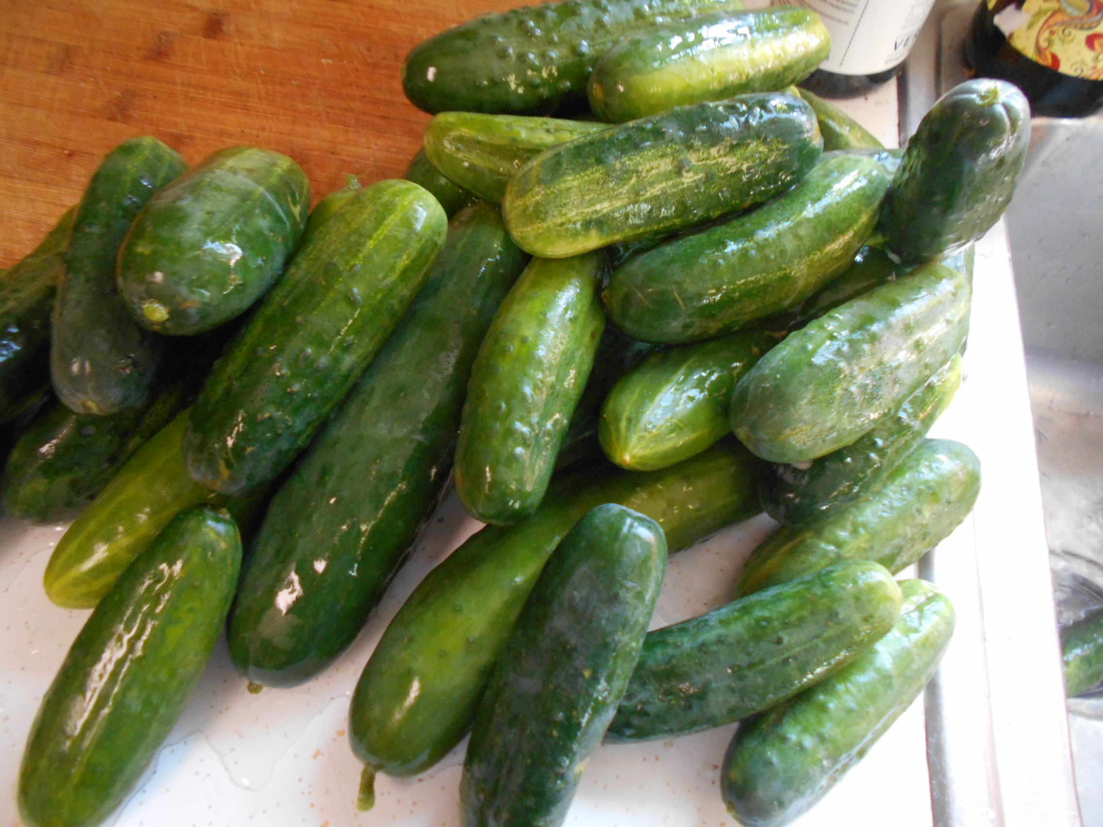 Once the jars, lids, and rims are boiled I then wash the cucumbers thoroughly.
