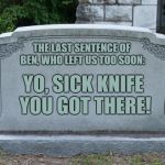 So how would you all like to have a homework assignment. If you’re so inclined, send me your epitaph and last words and hopefully by then I’ll have mine done and will I’ll post them.