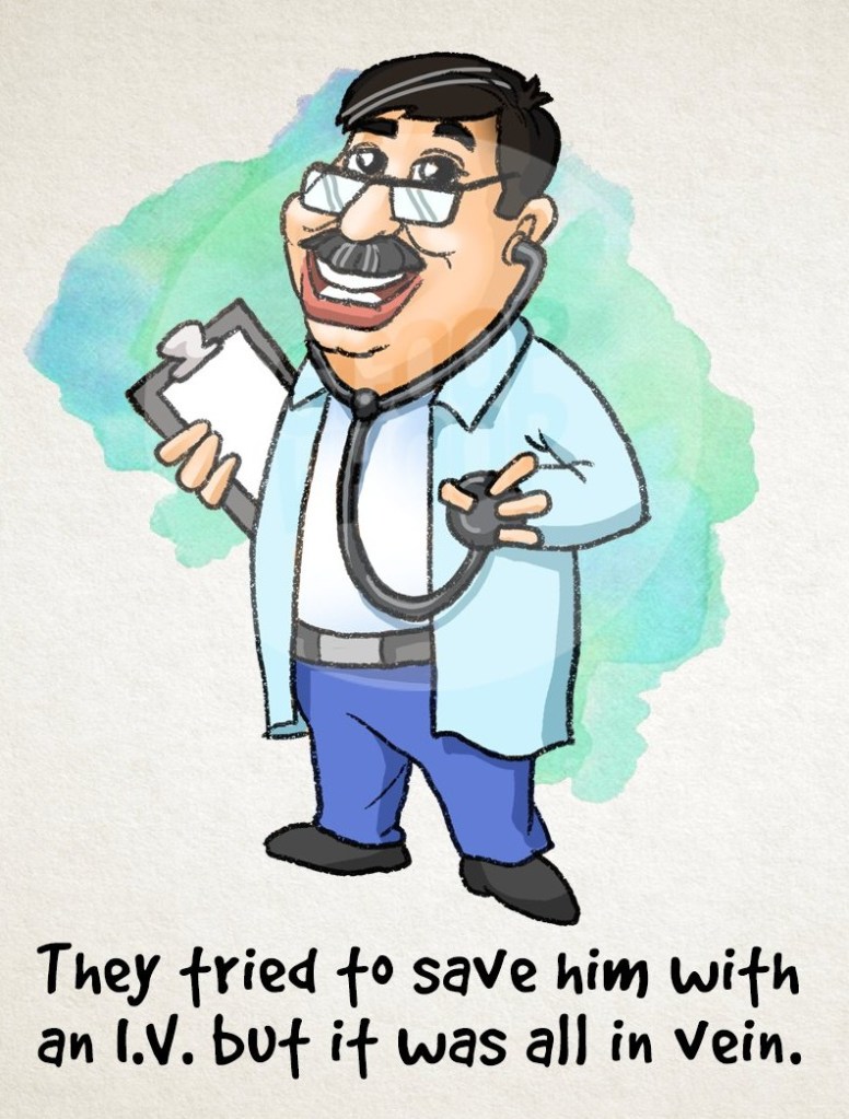 For me these last four years have consisted of constant doctor visits, nurses, oncologists, chemotherapy, scans, MRI’s, Cat-Scans, multiple blood tests and surgeries. It’s still causes me to break out in a cold sweat anytime I drive by a hospital or hear an ambulance go by. Even a hospital janitor in a white coat freaks me out a little. My blood pressure soars a minimum of thirty points just by walking into their offices and it takes another 20 minutes for it to lower itself to acceptable limits. With all of that in mind here is my contribution of “one-liners” for all of those outstanding yet truly annoying medical professionals.