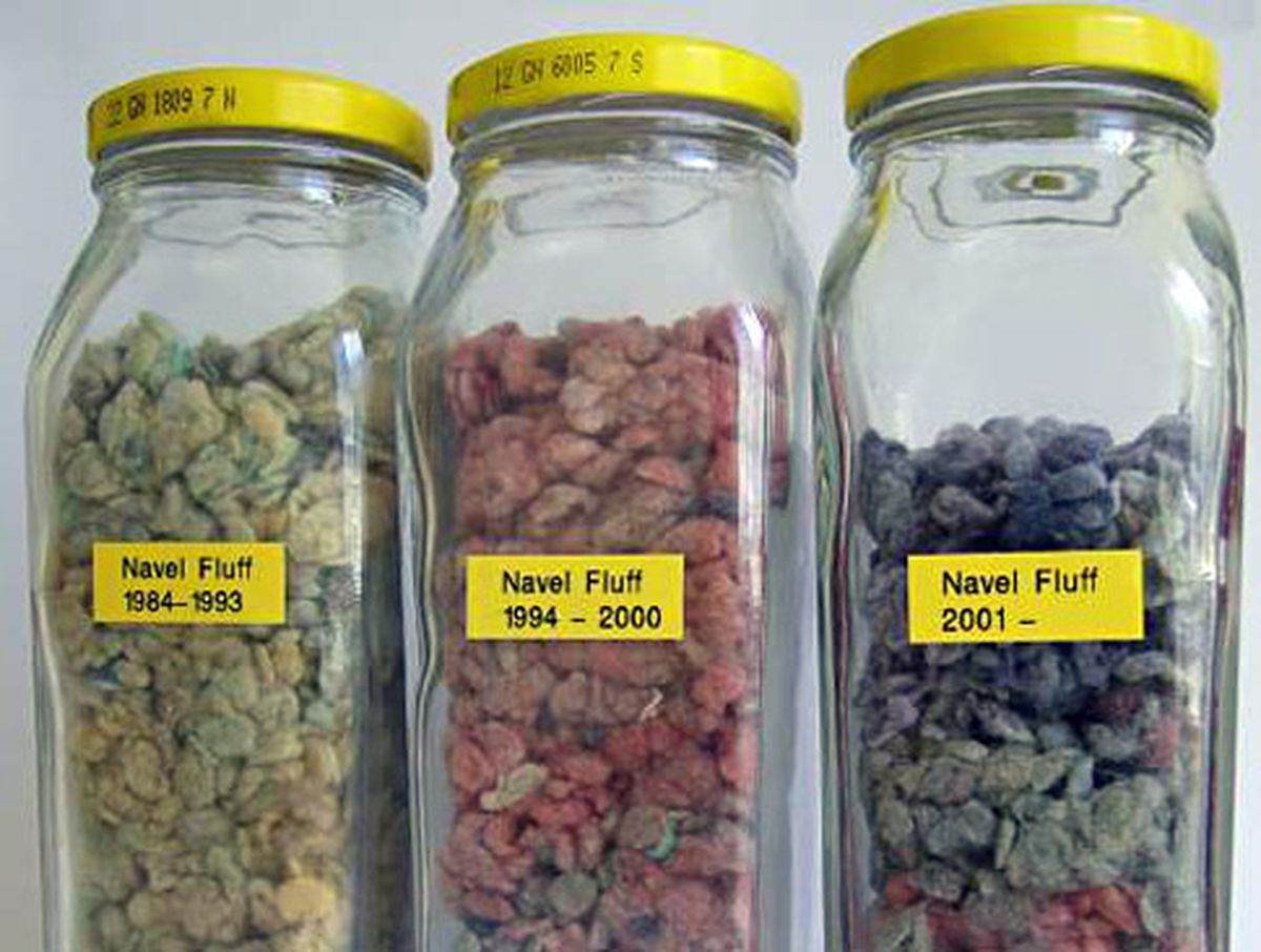 - A number of surveys have been undertaken in relation to bellybutton lint. They’ve all found that the lint is generally blue in color and is more prevalent in the navels of certain types of people. To answer why it tends to be blue, the origin of the lint must first be considered.