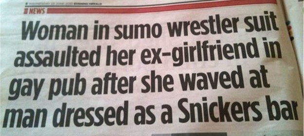 As a kid I learned to read the newspapers from my parents. At that time there was very little current event news available except by newspaper due to the fact there was no Internet and in my case no television. You either picked up the local news by radio or from the newspapers. In my later years I occasionally read newspapers on Sunday mornings, and it took a couple of hours because the newspapers were at least 3 inches thick. A few years later I again took to reading the Sunday papers primarily looking for jobs. I never really appreciated the newspapers like I should have and there are times I do miss being able to wake up on a Sunday morning, make a huge mug of hot coffee, and sit and read every word of every page of the New York Times or the Pittsburgh Press. Unfortunately, with the passing of time newspapers are slowly fading away. I can’t let that happen without having a little fun with them before they’re all gone which means today, you’re going to get some more of our more humorous newspaper headlines supplied by many alleged professional editors. Have fun with it.